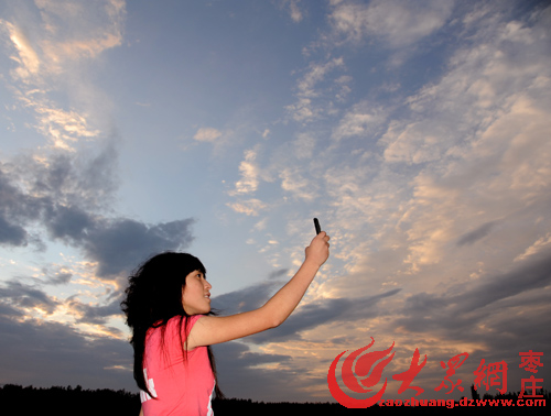 大眾網棗莊8月8日訊(特約記者 李宗憲)8月7日,棗莊市山亭區的一名女孩在用手機拍攝美麗的晚霞。受今年第9號臺風“梅花”的影響,當日,棗莊市迎來一場降雨,臺風過后棗莊天空出現美麗晚霞。