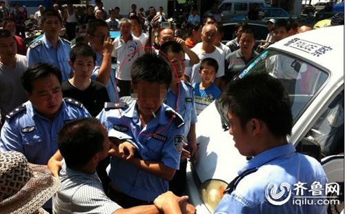 這張標明為“德州新河東派出所民警執法時抽煙,讓人難以理解”的照片中顯示:出警現場共有四名警察一輛警車,周圍還有很多圍觀的群眾,兩名男民警正在架著一名中年男子的胳膊“拉上警車”,其中照片中間的一名民警嘴巴里叼著一顆香煙。隨后記者致電新河東派出所張所長,張所長承認“口叼香煙”民警確是是該所警員,證實了這張照片的真實性。