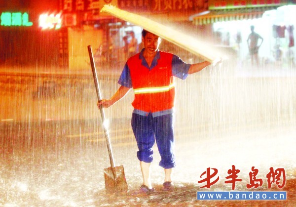 8月15日晚8時30分許,伴隨著電閃雷鳴,青島市區突降大雨,不到半個小時,市區局部區域最大降雨量達到或超過50毫米。市排水管理處迅速啟動最高級別防汛預案——一級防汛預案,通知所有人員就近趕赴各重要路段,保證道路通暢。