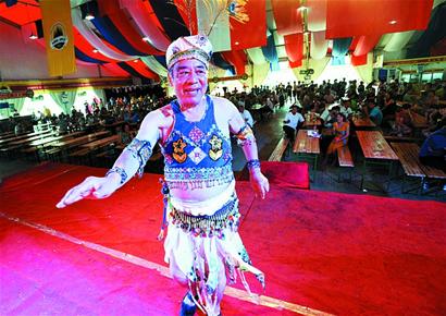 “我就是自娛自樂,來啤酒城里展示一下。”78歲的“肚皮舞”老漢馬競孟告訴記者,從2003年開始,他就組織了40多名老鄰居參加了啤酒節(jié)的藝術(shù)巡游團(tuán),之后每年都到啤酒節(jié)參加巡游。曾經(jīng)是一名醫(yī)生的馬競孟退休后沒閑著,自學(xué)了民族服飾設(shè)計(jì),曾在全