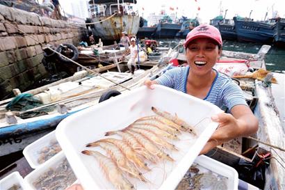 “我們是最早回來的漁船,估計今天也就我們這3條船,想買得抓緊了!弊蛉障挛3時許在青島小港碼頭,一位船主從艙里撈出螃蟹、蝦虎、蝦等海貨,放到塑料盒里,“一口價”按盒論堆賣。船主告訴記者,他們都是在近海捕撈的小漁船,網里沒什么大魚,趕緊靠岸就是為了能賣個好價錢。6條一盒的活黃魚能賣到30元,有些大蝦要價50元一只。(記者 趙健鵬 攝)