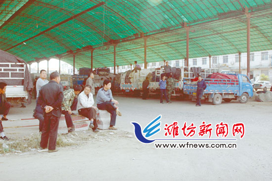 [提要] 山東省安丘市姜蒜批發市場內,姜販們在等待客戶來收姜。每年10月份都是姜農忙著賣姜,腰包內大把大把進鈔票的時候,但是連日來,記者在山東濰坊昌邑市都昌街道和安丘市凌河鎮、石堆鎮等地采訪發現,姜農們個個一臉愁容。