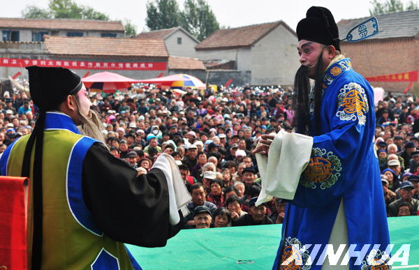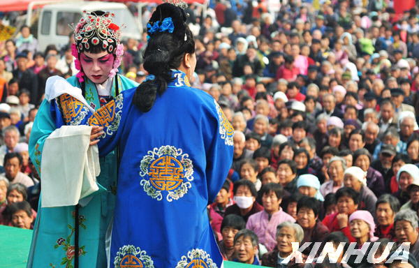 10月19日,鄒平縣呂劇團演員在該縣孟寺村為村民演出。新華社發(董乃德 攝)
