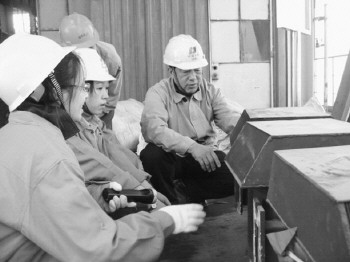 上圖:楊玉昌(右)在鍋爐檢修現場。