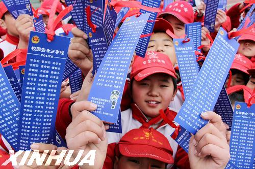 [提要] 11月30日,山東省棗莊市市中區(qū)紅旗小學的學生展示民警發(fā)給他們的“校園安全‘三字經(jīng)’”書簽。近日,棗莊公安局市中分局勝利路派出所的民警把交通、防火、防騙等安全防范常識編成通俗易懂的“三字經(jīng)”歌謠,并制作成“校園安全‘三字經(jīng)’”書簽,送給轄區(qū)內(nèi)各學校的中小學生,幫助學生們掌握安全防范技能,提高自我保護意識。