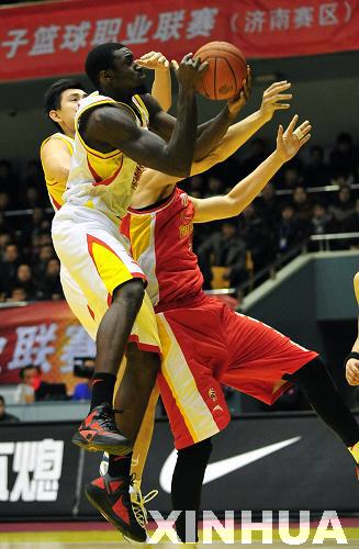 12月14日,山東黃金隊(duì)球員亨特(左)在比賽中上籃。當(dāng)日,在2011-2012賽季中國(guó)男子籃球職業(yè)聯(lián)賽(CBA)第11輪比賽中,山東黃金隊(duì)主場(chǎng)以112比87戰(zhàn)勝八一雙鹿隊(duì)。