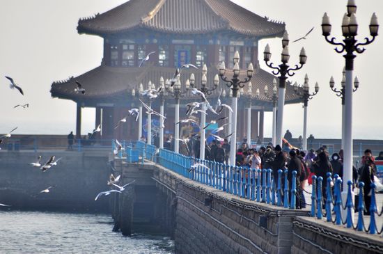 海鷗 風景 游客 美麗的地方 避寒 喂食 青島棧橋 成群 寒流 冬裝