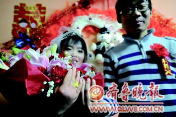 丁金杰的這一狀態,李海麗看在眼里,急在心上,“我想了想,決定和他舉行婚禮,讓他有點壓力,更有信心戰勝病魔。我們從來沒過過情人節,把婚禮定在這一天,會讓我們記一輩子的。”這似乎勾起來李海麗的美好回憶,“去年七月七的時候,他第一次給我送了花。”李海麗的臉上泛起了一縷紅暈。