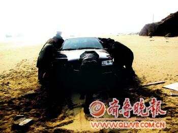 [提要] 20日,市民陳先生一家從菏澤曹縣開車到黃島銀沙灘來游玩,下午4時10分,陳先生一家準備離開時才發現轎車陷在沙灘上,便撥打110求助。薛家島派出所民警趕到現場后,成功將車推出沙灘。