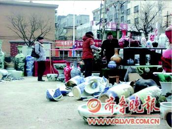 22日夜間,突然刮起大風(fēng),泰城方圓廣場(chǎng)上的不少瓷器被刮倒摔碎,兩家瓷器商損失10萬元以上。據(jù)泰安市氣象臺(tái)預(yù)報(bào),24日有小雨雪,25日夜還有6級(jí)陣風(fēng)。 本報(bào)記者 劉來 攝