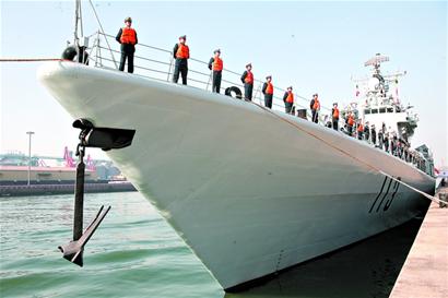 [提要] 昨日上午 10時,雄壯的《中國人民解放軍進行曲》奏響,海軍第十一批護航編隊從青島膠州灣某軍港解纜起航,奔赴亞丁灣、索馬里海域接替第十批護航編隊執行護航任務。這是中國海軍自2008年12月開展護航行動以來,由北海艦隊第一次組織執行護航任務。