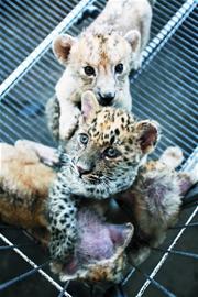 昨日上午,記者來到青島森林野生動物世界的育幼室看到,4只小獅子和金錢豹“金金”只有小貓那么大,室內還生著火爐。“因為擔心小獅子和小豹子感冒,育幼室內溫度要一直保持在25攝氏度。”猛獸區飼養員尚延洲說。