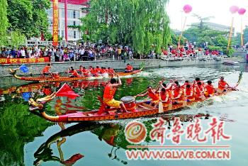 [提要] 19日上午,天橋區(qū)首屆高校龍舟對抗賽在西工商河舉行。來自山東科技大學(xué)、山東交通學(xué)院的兩支龍舟隊經(jīng)過三局兩勝制比賽決出優(yōu)勝者。