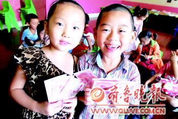 21日下午,東營開發區小太陽幼兒園的小朋友們開心地展示領到的400元現金。據了解,這是中心城區普惠性民辦幼兒園根據幼兒的出勤情況發放的補貼。