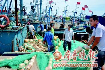 [提要] 明天,休漁期就要結(jié)束了。圖為遠(yuǎn)遙漁場(chǎng)內(nèi),船員們正在合力從岸邊往船上搬運(yùn)拖網(wǎng)。據(jù)一位船主介紹,漁場(chǎng)船員們都已經(jīng)為出海做足了準(zhǔn)備。目前,大部分漁船漁網(wǎng)和纜繩都已經(jīng)更新,生活用品也將往漁船裝運(yùn)。