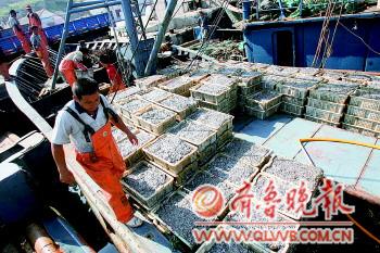 9月1日,在萊州三山島漁港,船員正在往岸邊搬運成箱的小魚。9月1日是煙臺開海第一天,當天出海歸來的漁船收獲一般,多數漁船剛能保本。一條漁船忙活了4小時僅打了2萬斤小雜魚上來,只能送到魚場做餌料。 本報記者 趙金陽 攝