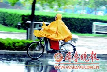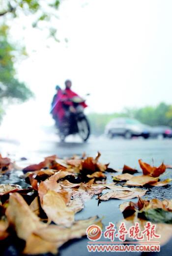 11日下午,市民冒雨騎行在府前大街上。隨著氣溫下降,雨后的路面上散落著枯黃的樹葉,一派濃濃的秋意展現(xiàn)在市民眼前。記者從東營(yíng)市氣象臺(tái)了解到,今明兩日都有降雨,氣溫將持續(xù)下降,明日市區(qū)最低氣溫16℃。