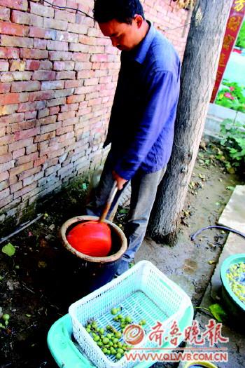 摘下的葫蘆經(jīng)過很多工序才能拿到市場上去賣。首先要把葫蘆上的皮刮掉,用硫酸水浸泡,然后再晾曬,等到葫蘆的外層呈現(xiàn)黃色的時候,葫蘆就可以拿去賣了。