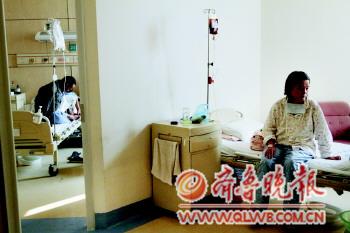 正值壯年的李瑞被查出患有肝癌、肝萎縮,他的妻子為了挽留住丈夫的生命,帶著丈夫從棗莊的農村老家來到聊城市人民醫院求醫。得知肝移植能保住丈夫的生命,晏如華和公爹各捐獻一部分肝臟,移植到李瑞的身體內,演繹了親人間“同肝共苦”的感人真情。圖為,李瑞和他妻子兩人正在病房內輸液。 本報記者 李軍 攝