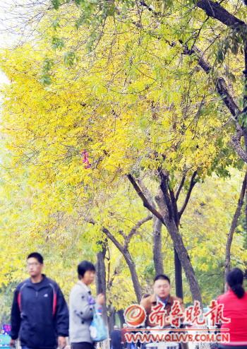 16日下午,山師大校園里,一陣秋風吹過,樹上的葉子紛紛落下。本報記者 蔡旭超 攝