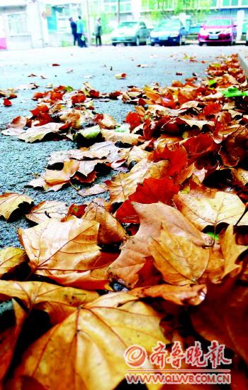 ▲16日,省城街頭,秋風掃落葉。本報記者周青先攝