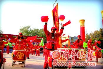 7日,日照街道在東港區(qū)政府廣場舉行“喜迎十八大群眾文藝展演”,來自各個社區(qū)(村)的舞蹈隊、歌唱團(tuán)以及街道的品牌“日照第一鼓”威風(fēng)鑼鼓、濱海藝術(shù)團(tuán)、“東港龍”舞龍舞獅隊齊聚一堂,載歌載舞。 本報記者 司路清 攝影報道