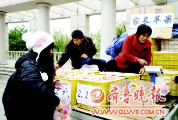 ▲“家長(zhǎng)蘋果”好吃又不貴,消息傳開,很多同學(xué)前來(lái)捧場(chǎng)。 本報(bào)記者 王帥 攝