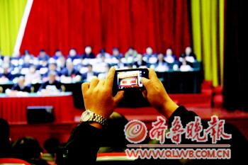 1月10日上午,市政協(xié)十二次二屆會議勝利閉幕,一名政協(xié)委員用手機(jī)拍攝下閉幕一刻留作紀(jì)念。