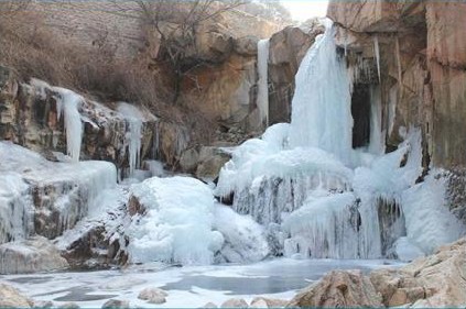 天氣變冷,泰山景區里潺潺流水都結成冰,桃花源、步云橋、天井灣等景點形成冰瀑。別有一種魅力。