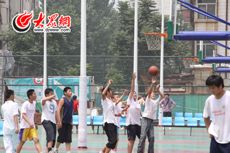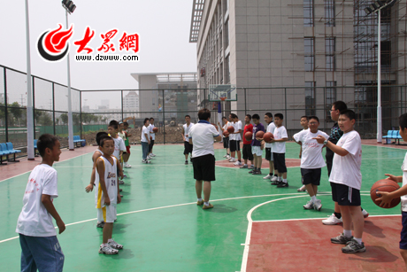 上午10點,在地處濟寧市中心繁華路段的濟寧全民健身廣場西側,幾十名孩子正在教練的指導下在塑膠場地上訓練籃球。孩子們三步上籃的動作一點不輸給旁邊激戰正酣的一群年輕人,記者了解到場地里的很多孩子都參加了市體育局組織的暑期籃球班。五年級的李昊告訴記者,“爸爸媽媽都上班,暑假自己不想一個人呆在家里,就報名參加了籃球班,在這里我交了很多的好朋友。”