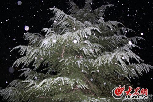 大眾網濟南11月11日訊 今晚8點多鐘,久候的雪花終于從濟南上空飄落。飄飄灑灑間,裸露在空氣中冰冷的物體表面已經積下雪白一片。 記者 趙爾印 攝影報道