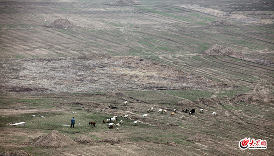 3月24日,記者巡訪南部山區臥虎山水庫發現,東側庫區已經見底,筑路周邊點綴著一片片綠油油的菜園,露脊的河灘被幽黃色的蒿草覆蓋著,泛著淡淡的青綠色,一位老農趕著一群羊在河灘漫步,東側庫區內只有零零碎碎的幾片洼地仍有少量蓄水,此時的情景似在空曠的濕地,又似川北的高原草原。