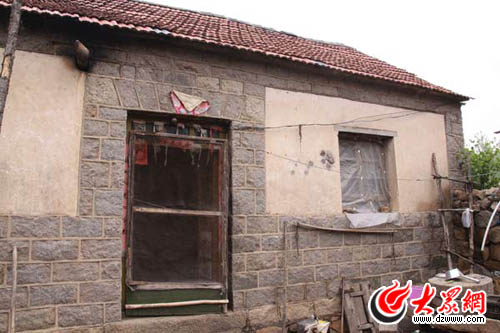 王艷的家在離夏蔚鎮駐地五六里遠的一個小山村里,房子是在沂蒙山區都已很少見的土坯房,低矮破舊。王艷的爺爺說,房子已經蓋了三十多年了,原先是茅草房,前幾年才湊錢把房頂的茅草拆掉,換成了瓦。記者看到,房子的窗戶上沒有玻璃,而是釘著白色的塑料布,即使是白天,屋子間也非常陰暗,唯一的家電是一臺18英寸的黑白電視機。