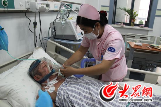 護士長為鄭老戴上呼吸器