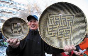 “這是我們老家編的簸籮,全部是手工的,掛在墻上是裝飾品,放東西就是用具,很實用!”昨天,一位操著南方口音的攤主引來很多人的關注。這位攤主姓歐,歐先生老家是貴州的,在濟南做生意,帶來了貴州苗族的三大件,朱砂飾品、竹編簸籮和妹妹自己做的拖鞋。