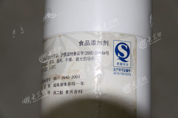 記者看到吳先生買的“飄香香精”重500克,側面還有QS等標識。吳先生說,除了這種“飄香香精”外,常用的還有“辣椒精”“肉香精”等添加劑,價格在30塊錢以上,貴的七八十塊錢。吳先生說,這些東西做火鍋或者麻辣燙都用得到,另外,像什么乙基麥芽酚以及燒烤或者做面包用的膨松劑等等都有賣的,“就看你是做什么生意了”。