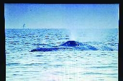 鯨魚在噴水。