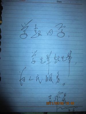 李肇星給本報(bào)記者簽字留念