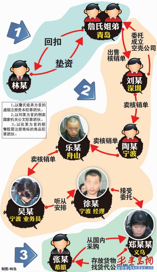 但是詹某卻并不知道這一批假LV包。詹某供述,她在這家公司當業務員的同時,和自己的弟弟還開了一家公司,也是從事與公司相關的代理業務,2010年3月,她在網上受一名叫“吳生”的人委托 ,以找林某墊資的方式,成立了8家空殼公司,騙領出口核銷單后通過快遞寄給“吳生”,“吳生”每月付給她相應的領單費用。而這批假貨所用的核銷單,正是出自這8家公司騙領的核銷單中的一張。很快,這個以詹氏姐弟為首的虛報注冊資本犯罪團伙被一網打盡。