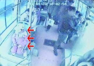 劉漢格20日在公交車上的監(jiān)控畫面。 本報(bào)記者 杜洪雷 攝