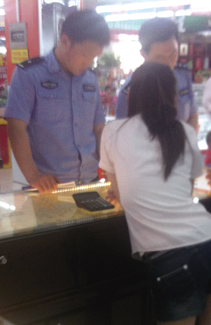 5月30日晚上8點(diǎn)55左右,濟(jì)陽(yáng)縣開(kāi)源大街上的信譽(yù)商廈就要關(guān)門(mén)了,位于一樓的“六六福珠寶”店,柜臺(tái)服務(wù)員也開(kāi)始清理柜臺(tái),此時(shí)一名男子走了進(jìn)來(lái),迂回到珠寶店柜臺(tái)前與服務(wù)員寒暄,誰(shuí)知沒(méi)說(shuō)兩句話,此人突然掏出一把槍?zhuān)瑢?duì)服務(wù)員頭部喊道:“蹲下!”商場(chǎng)內(nèi)不少柜臺(tái)的服務(wù)員都被眼前的一幕驚呆了,“哎呦,壞了,有人搶劫!”