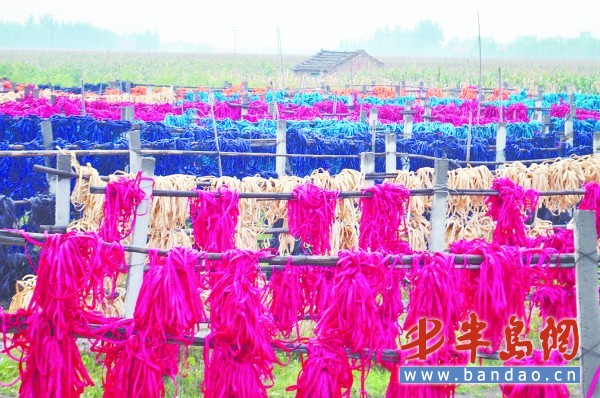但并不是所有的草編廠都很守規矩,在該鎮邊緣地方,丁東生突然發現有一大片花花綠綠的地塊,“這應該就是漂染的草編繩”。果不其然,一扎扎草編繩被搭在架子上晾曬著,有十幾排。在地塊附近,一條臭氣熏天的污水溝肆意橫流,邊上就是一家草編廠,“這應該是工廠偷偷排到溝渠里的,量不是很大,但對周邊的土壤等危害較大。”丁東生說。