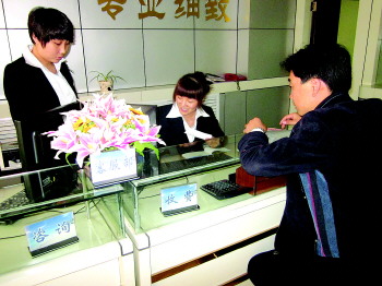 11月6日,濟南金泉大廈,業主在物業客服部交費。該大廈曾是電梯癱瘓、水電常停的“爛攤子”,新物業公司改進服務后,得到了業主的認可。