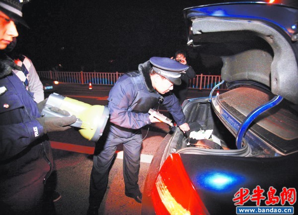 城陽警方在對可疑車輛進(jìn)行盤查。