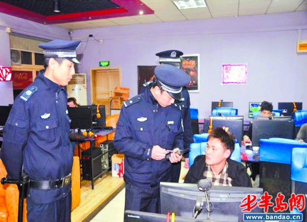 嶗山警方對網(wǎng)吧進(jìn)行檢查。