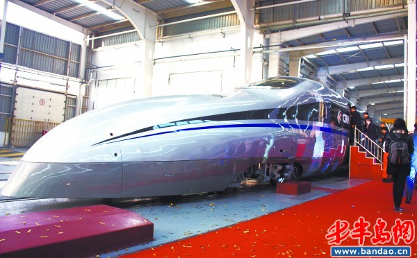繼CRH380AL型高速列車創(chuàng)造出 486.1公里的世界鐵路運營試驗最高時速紀錄后,中國又一更高速度試驗列車,12月25日在中國南車四方股份公司落成。更高速試驗列車外形如“寶劍出鞘”,將為更高速商業(yè)運營列車的安全性、可靠性等提供研究平臺。
