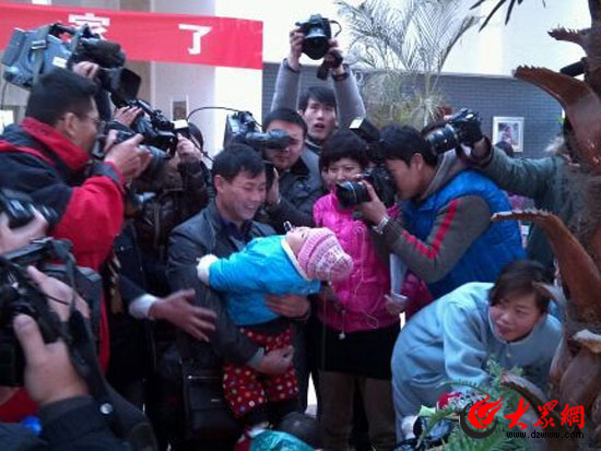 據悉,2009年,兩歲云南女童小雪剛出生兩個月就被拐賣到濟南,警方查獲后,把小雪寄養于濟南市兒童福利院,再把小雪DNA血樣數據輸入全國打拐DNA數據庫。2011年12月31日,警方終于確認小雪的親生父母是遠在云南的郭某夫婦。今天上午郭某從云南乘飛機趕往濟南,將要與失散兩年的女兒見面。