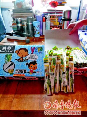 最終,經過一番討價還價,小朱四人花費1500元購買了筆芯、筆記本、雨傘等物品。