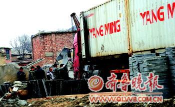 還鄉(xiāng)店路路東一個村子,一輛箱式大貨車旁堆滿了已加工成半成品、成品的“濟(jì)南青”板材,七八名村民向車上裝貨。見有路人看,一名婦女馬上警惕地張望。
