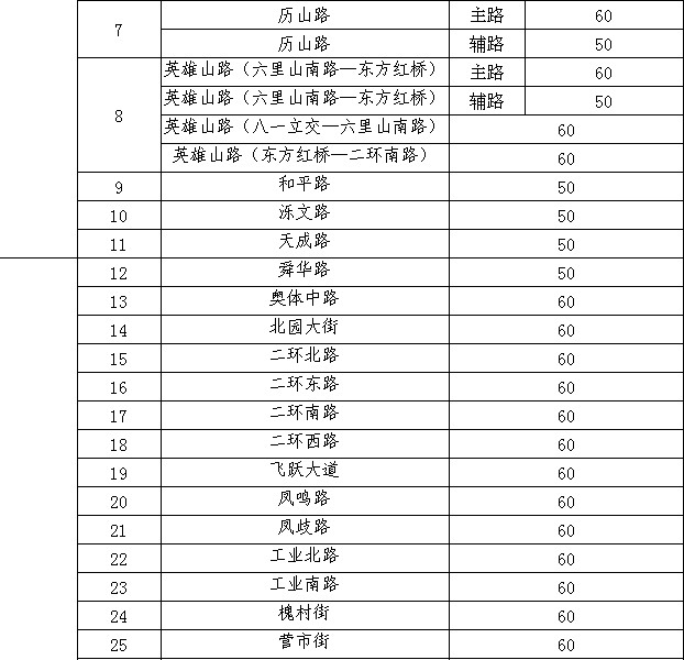 本次調(diào)整決定對二環(huán)東路高架橋和北園高架橋2條快速路的最高時速由原來的60公里/小時提高到80公里/小時;對順河高架橋和緯六路高架橋2條快速路的最高時速重新界定為60公里/小時。
